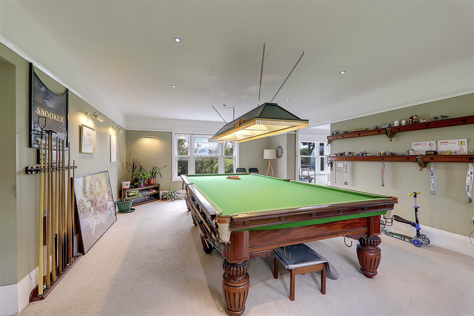 Bacon Micawber Lettings are pleased to be marketing this substantial detached home in the heart of Sompting Village. This house has clearly been refurbished and extended to a high specification in previous years with quality fittings being apparent. The accommodation is versatile and well planned and comprises predominantly south facing rooms with views over open horse grazing land. On reaching the the property there are secure electric gates and ample parking for several cars, along with an Electrical vehicle charging point. Internally the accommodation consists of a large south facing living room with wood burner, superb kitchen/diner with quality walnut units and built in appliances, utility room, second snug lounge area, large games room with full size snooker table (landlord plans to leave this in situ) and access to the integral double garage, ground floor shower room, 5 first floor bedrooms - the master having a superb vaulted ceiling and modern en suite shower room plus large family bathroom. Outside the gardens are a feature of the property with a brick built store, undercover storage area, summerhouse, large lawned area, rose garden and patio area with garden furniture. This property has full gas central heating, quality double glazed windows and the owners can be flexible on leaving or removing the furnishings to suit the tenant. Available from mid December. EPC: D Council Tax G.