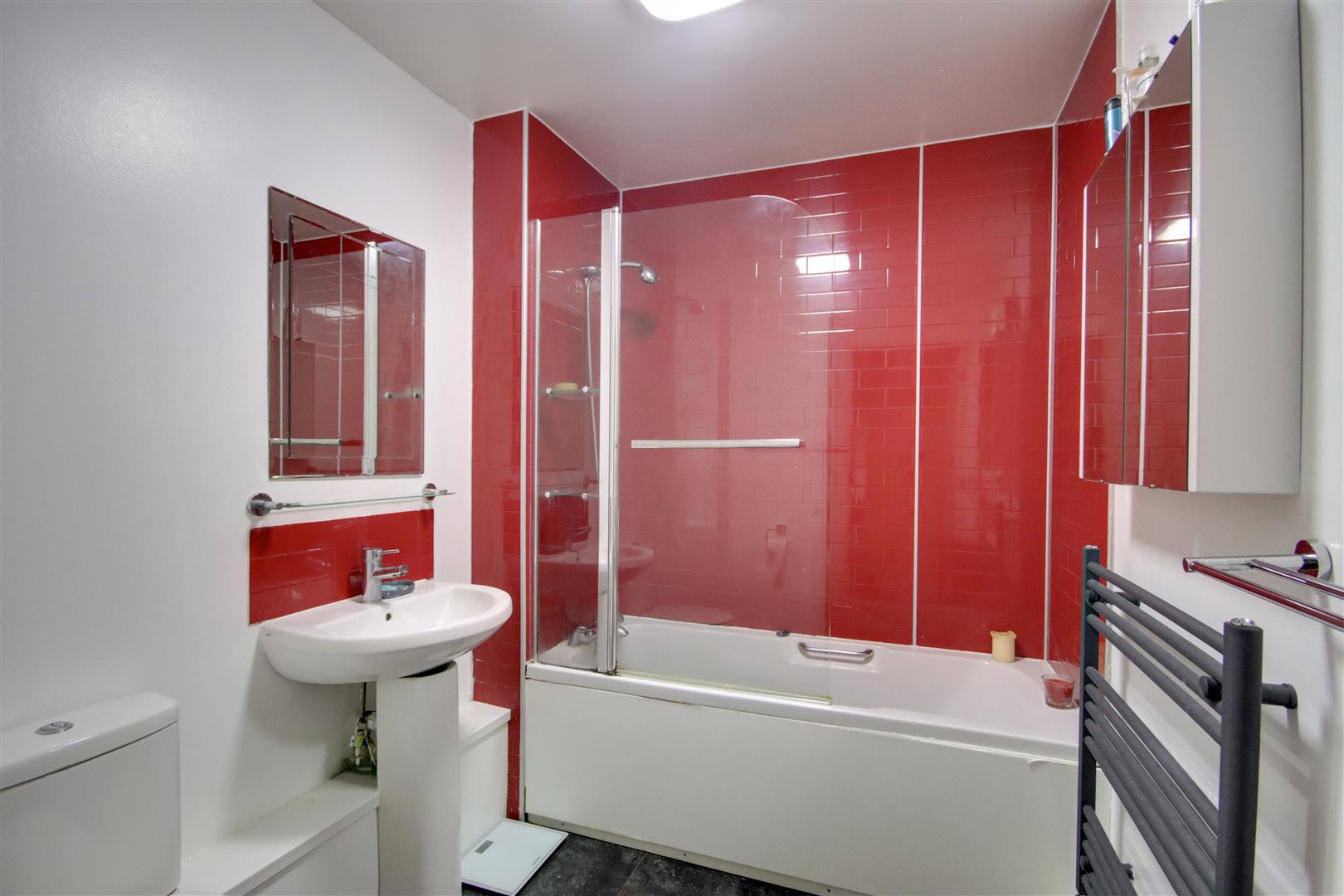 Panelled bath with mixer tap and attachment forming overhead shower, glazed screen. Pedestal wash hand basin with mixer tap. Close coupled WC. Extractor fan. Ladder style towel radiator. Mirrored medicine cabinet.