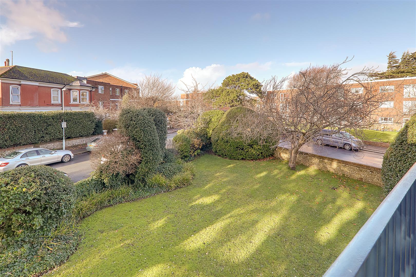 Attractive views over communal gardens.