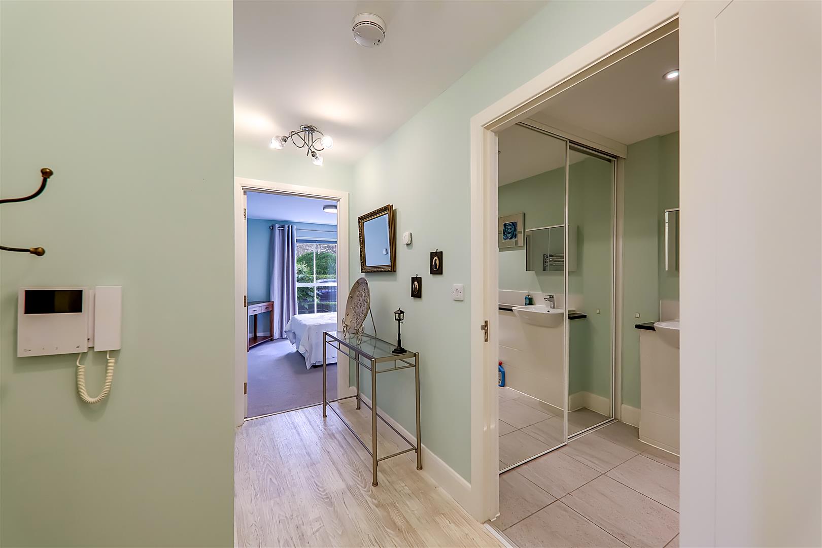LVT floor with under floor heating and wall mounted thermostat control. Double recessed utility cupboard housing space for washing machine, shelving and electric consumer unit and hot water cylinder. Security video entry phone.